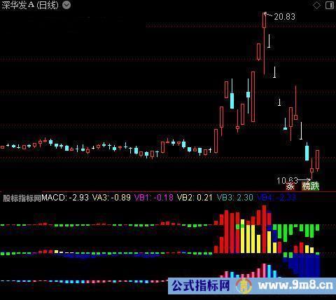 VB74:STICKLINE(VA3<0 AND VA3>=REF(VA3,1),10,10+VA3,1.5,0),COLORGREEN;