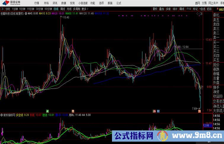 多空线:(MA(CLOSE,3)+MA(CLOSE,6)+MA(CLOSE,12)+MA(CLOSE,24))/4,COLORYELLOW;