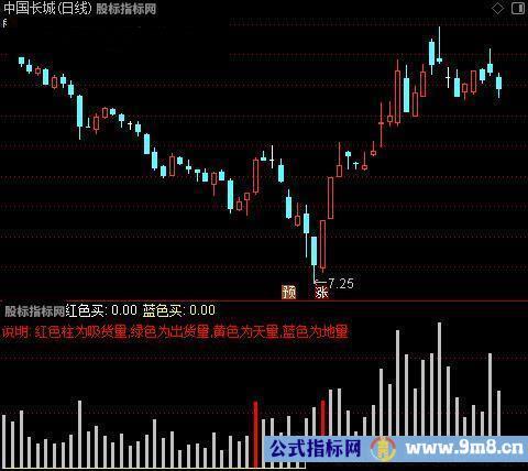 DRAWTEXT_FIX(ISLASTBAR,0,0,0,'说明: 红色柱为吸货量,绿色为出货量,黄色为天量,蓝色为地量'),COLORRED;