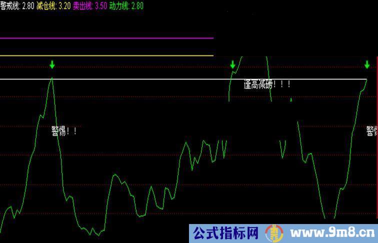 DRAWTEXT(CROSS(动力线,减仓线),2.8,'逢高减磅!!! '), ,;