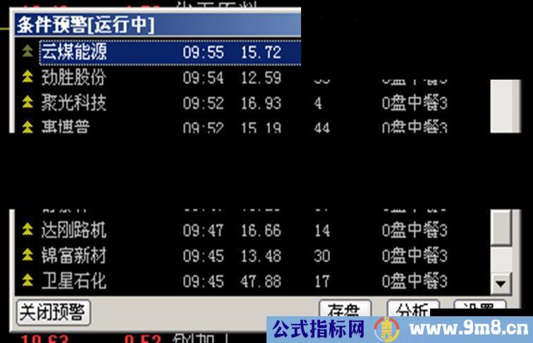 XX:=ST AND CURRENTTIME>=94000 AND DYNAINFO(8)>=100 AND NW>=0.25 AND DYNAINFO(23)/DYNAINFO(22)>=1.5;