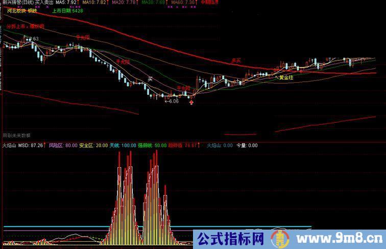 STICKLINE(火焰山>0,0,今量*0.8,1,0) COLOR0066FF;