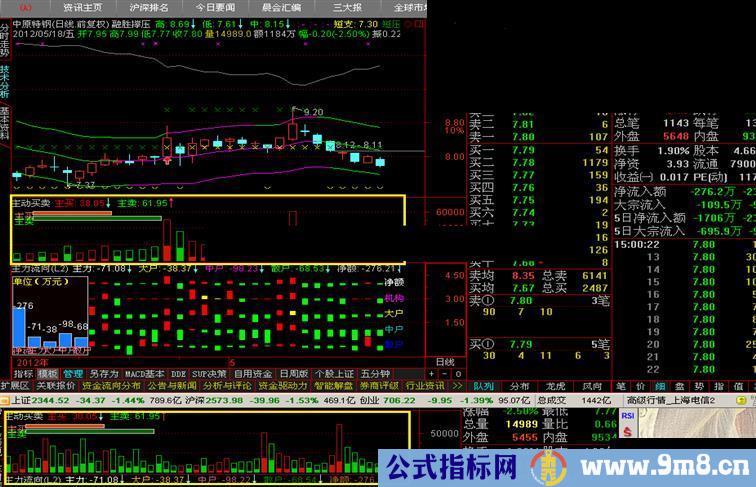 有人对资金数据深恶痛绝,咱谁也不得罪,采用主动买卖量编写,你问我数据准不准,咱也不知道,介个得问通达信公司了,只要不太纠结数值,只看形态,我觉得还是比较靠谱的,下面二图,同一只票,一个决策家深圳站点,一个高级行情-上海L2站点的图形对比,差不离吧,按官方说法,通达信的L2数据是没经过处理的原始数据。(上面二图中的票高级行情站点和决策家站点数值居然一样,纯属巧合,一般还是有点差别的)