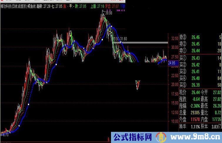 用法:鳄鱼线是结合了不规则分形几何学和非线性动力学的时间框架线有蓝、红、绿三条。蓝线,是鳄鱼的颚。红线,是鳄鱼的牙齿。绿线,是鳄鱼的上唇。基本上,无论实时价格往任何方向移动,鳄鱼线扮演着使我们的交易保持正当方向的罗盘角色。