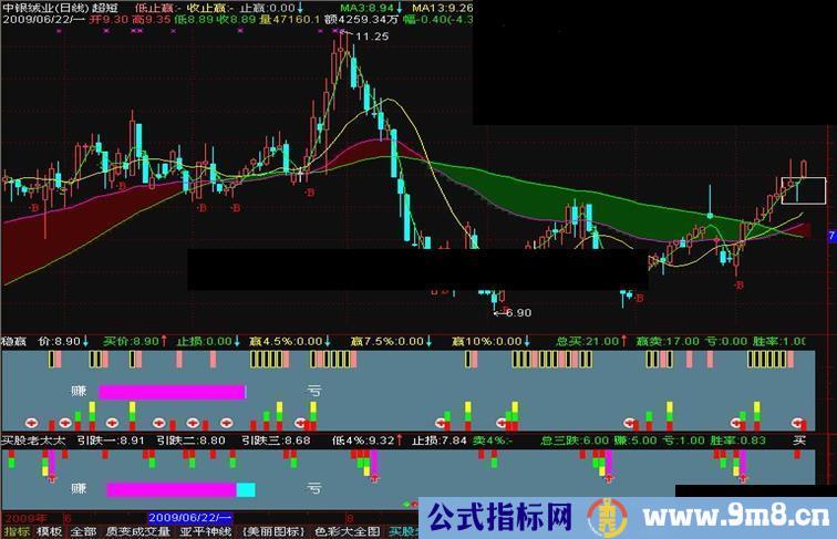 赢7.5%:REF(买价,买距)*(1+0.075)*尺,COLORYELLOW,NODRAW;