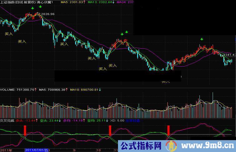 寻找底部的指标,出现红柱时要加以关注,对大盘的警示最佳,个股较敏感。至于底部的级别要自己观察