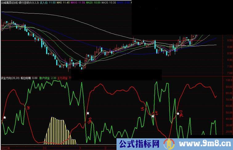 资金方向源码,幅图。也是个相对的资金流入流出,普通的券商通达信软件就可以使用。