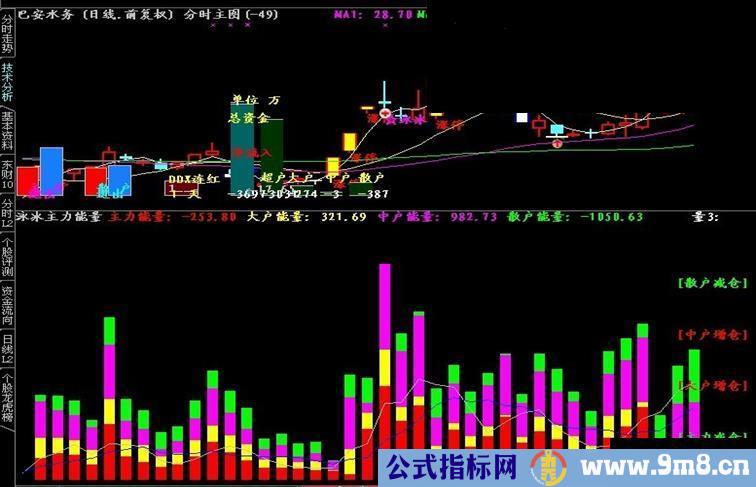 主力能量柱:STICKLINE(主力能量,0,ABS(主力能量),2,0),COLORRED;大户能量:(大户-均量),NODRAW;