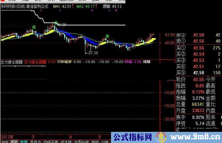 主力建仓提醒: IF(VAR3<8.5 AND VAR2<11,-10,0),COLORRED;