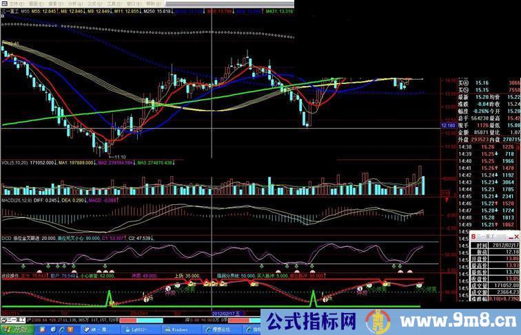 冲顶:if(CROSS(主力,65) AND 散户<主力,61,49),stick,LINETHICK2,colorf00ff0;49,stick,LINETHICK2,color000000;