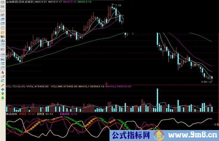 DRAWTEXT(ISLASTBAR=1 AND VAR12>VARF,50,' 大盘处在下降通道'),COLORCCFF99;