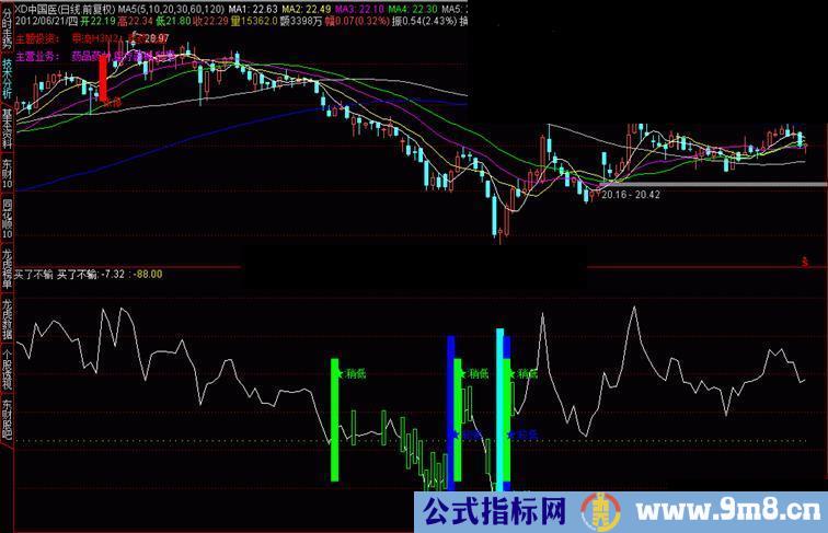 DRAWTEXT(CROSS(买了不输,-120),-80,'★:较低'),COLORBLUE;