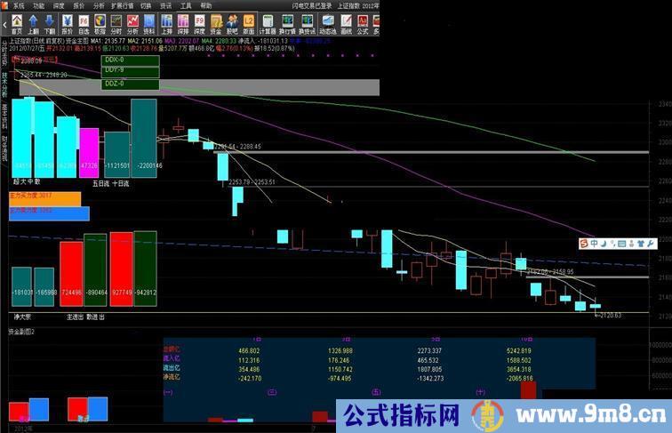 DRAWTEXT(CURRBARSCOUNT=30,画*0.64,'流出亿'),COLORCYAN;