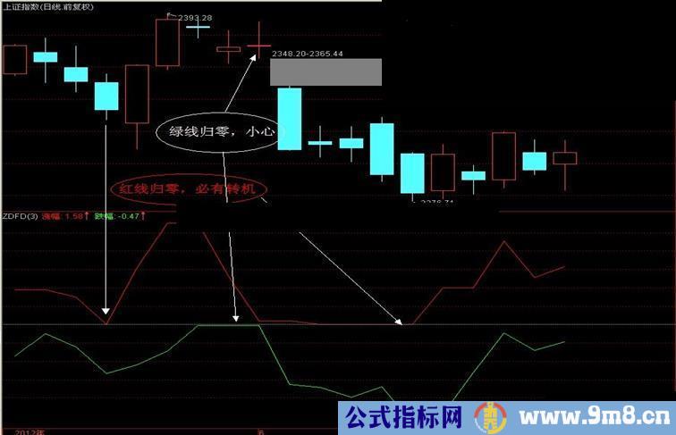 使用方法:红线值小于0.5,甚至等于零,必有转机;绿线接近0轴,甚至等于零,要小心了