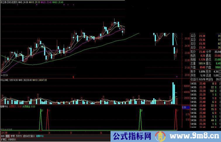 尖顶买入: ZIG(3,10)>REF(ZIG(3,10),1) AND REF(ZIG(3,10),1) (3,10),2), COLORRED,LINETHICK2; 尖顶卖出: ZIG(3,10)REF(ZIG (3,10),2),COLORGREEN,LINETHICK2; DRAWTEXT(尖顶买入=1,1,'入!'),COLORRED; DRAWTEXT(尖顶卖出=1,1,'出!'),COLORGREEN;