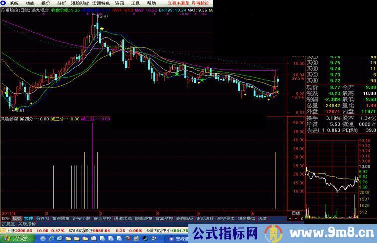 指标作用:散户操盘时,遇信号不明时,举棋难定,总喜欢身边有个师傅指导,本指标就是风险提示及时雨。