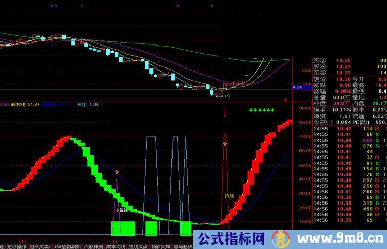 短线逃顶:=IF(I,0,1),COLORGREEN;
