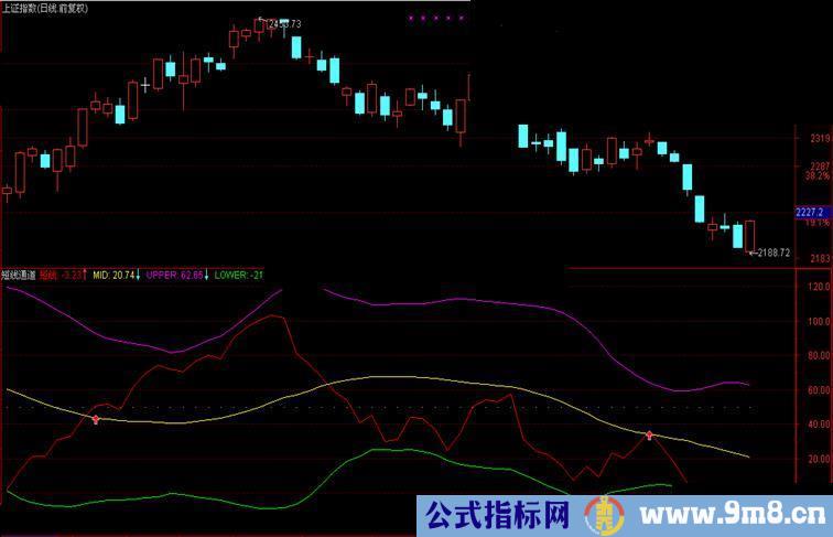 基本用法:短线上穿MID为买入,50轴为强弱分界线,触及或跌破下轨关注短期底部,上穿上轨运行注意头部风险,大致和BOLL线用法类似