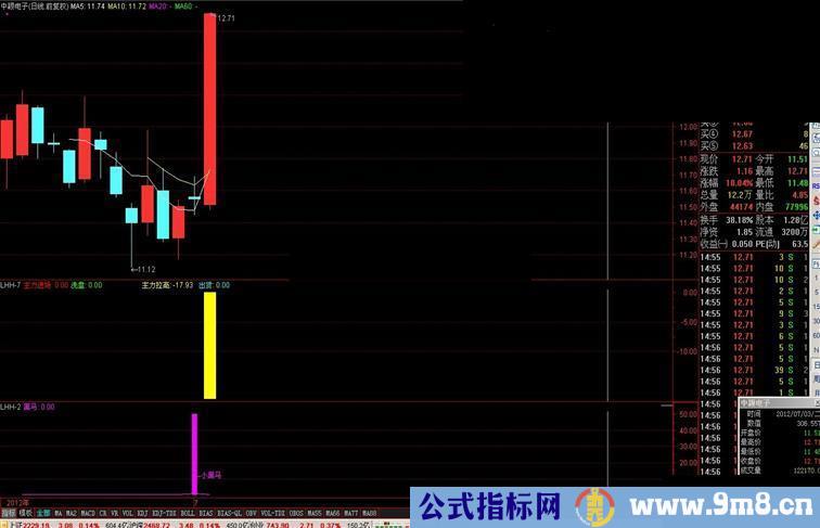 黑马:(MACD0>REF(MACD0,1)*2.5 AND MACD0>15),COLORFF00FF;