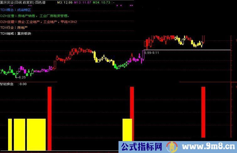智能操盘指标,黄色出现代表准备买入,红色出现为买入信号,一般抓强势股。