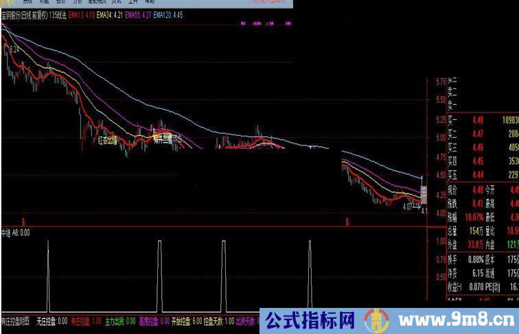 上涨中继A:=MA(C,5); A1:=MA(C,10); A2:=(MA(A/REF(A,1),2)-1)*100; A3:=(MA(A1/REF(A1,1),2)-1)*100; A4:=HHV(C,5)/LLV(C,5); A5:=SUM(A2>0.45,10)>0; A6:A3>0.45 AND A2<0.45 AND A>A1 AND A4<1.11 AND A5;