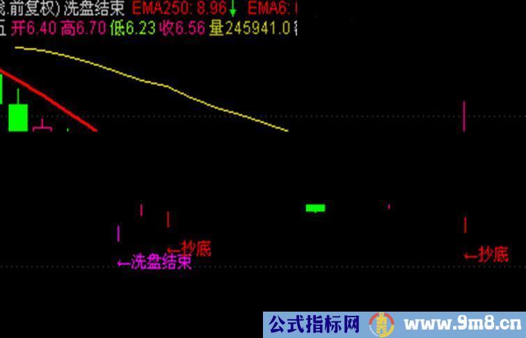 中线【买入】:=COUNT(CLOSE CLOSE/EMA18>1.004 AND CROSS(CLOSE,EMA18) AND EMA18>= REF(EMA18,1),LINETHICK,COLORRED; DRAWTEXT(中线【买入】,LOW*0.95,' 中线【买入】'),COLORRED; VL:=REF(LOW,1); VAR12:=(SMA(ABS(LOW-VL),13,1))/(SMA(MAX(LOW-VL,0),13,1))*100; VAR14:=MA(VAR12,13); VAR15:=LLV(LOW,34); VAR18:=EMA(IF(LOW<=VAR15,VAR14,0),3); VAR110:=SMA(SMA((CLOSE-LLV(LOW,54))/(HHV(HIGH,54)-LLV(LOW,54))*100,7,1),5,1); VAR111:=SMA((CLOSE-LLV(LOW,54))/(HHV(HIGH,54)-LLV(LOW,54))*100,7,1)*16.18-VAR110*10.9; T:=FILTER(IF(VAR111<=VAR110 AND VAR18>REF(VAR18,1),VAR18*8,0),20); DRAWTEXT(T,LOW-0.4,'←洗盘结束'),COLORFF00FF; DRAWTEXT(T,LOW-0.2,'|'),COLORFF00FF; VAR21:=(CLOSE-LLV(LOW,36))/(HHV(HIGH,36)-LLV(LOW,36))*100; VAR22:=SMA(VAR21,3,1); VAR23:=SMA(VAR22,3,1); VAR24:=SMA(VAR23,3,1); VAR25:=CROSS(VAR23,VAR24) AND VAR23<20; DRAWTEXT(FILTER(VAR25,10)=1,LOW-0.4,'←抄底'),COLORRED; DRAWTEXT(FILTER(VAR25,10)=1,LOW-0.2,'|'),COLORRED; VAR29:=CROSS(VAR24,VAR23) AND VAR23>80; DRAWTEXT(FILTER(VAR29,5)=1,HIGH+0.4,'←逃顶'),COLORBLUE; DRAWTEXT(FILTER(VAR29,5)=1,HIGH+0.2,'|'),COLORBLUE;