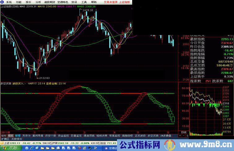 《波段买卖》指标,我使用多年,不是我自创的,在哪里下载的记不清了。该指标检测大盘波段,非常好用!可以滤除很多杂波,特别是大盘一跌,砖家就看跌;大盘一涨,砖家就看涨的鉴别器!不信你就试试!欢迎反馈交流。