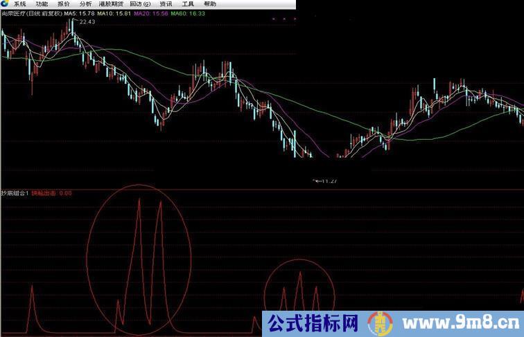 功能描述: 股价进入相对低位,该指标探针迅速升高,如同快枪刺出,当日价位便是阶段性低点.探针的高度越高说明低点信号越可靠.可在次日探针反转向下回落时买入.(如 图)