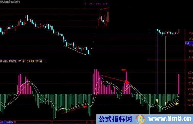 STICKLINE(主力资金>打压做空,0,主力资金,1,0),COLOR9900FF;