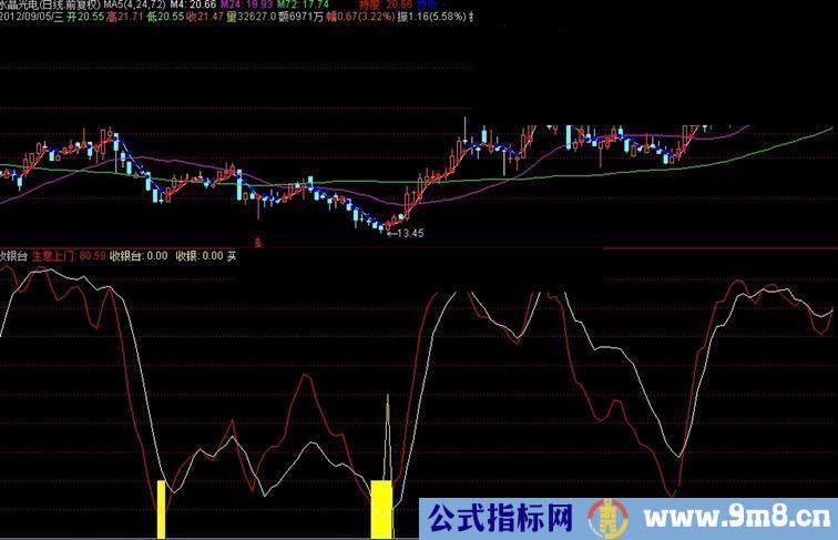 买卖顺意:MA((((-100))*(HHV(HIGH,34)-CLOSE))/(HHV(HIGH,34)-LLV(LOW,34))+100,5),COLORWHITE;