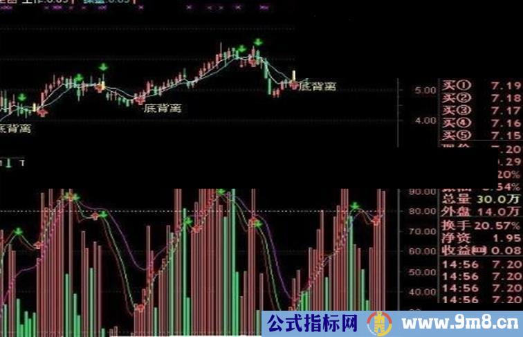 指标注解:本指标经过本人的2年测试,准确率高达98%,是目前唯一一款用成交量{成交量就是资金}来分析股市趋势的指标公式,具有非常强的实战意义,指标用法,:一共三根线,红色上穿绿色,并且资金柱刚好上穿到趋势线,大胆买进,