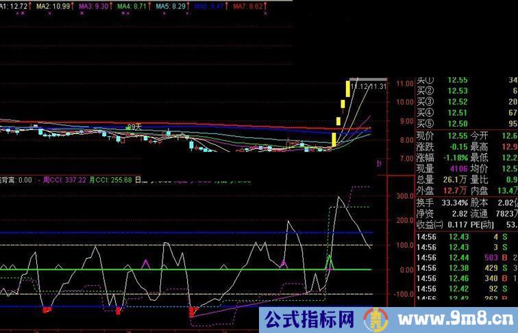 首先感谢平平200911老师给的启迪,本人添加了更为直观的信号指示。至于周CCI,月CCI隐形函数的问题,个人认为正像平平老师说的运气好的话会翻倍。只要抓到强势股,这些信号不会消失的,参考价值还是很大滴。认同本人的观点的童鞋,加分顶顶吧