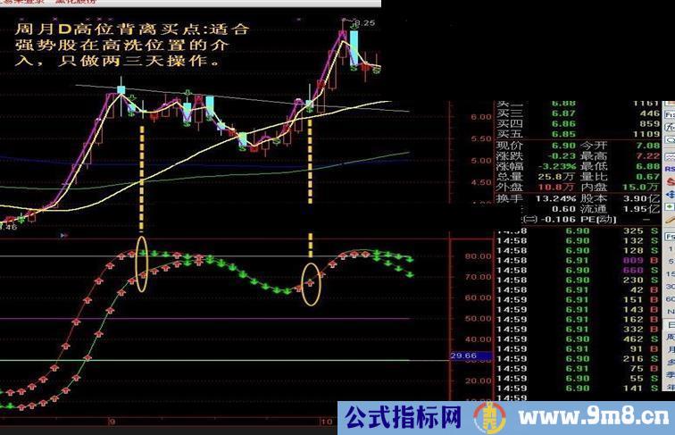 高位背离:周D跌 AND 月D涨 AND 周D>月D AND REF(周D涨,1) AND REF(月D涨,1) AND REF(周D涨,2) AND REF(月D涨,2) AND REF(周D涨,3) AND REF(月D涨,3);