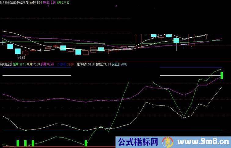 STICKLINE(短期>90 AND 中期>70,86,94,1,0),COLOR00FF00;