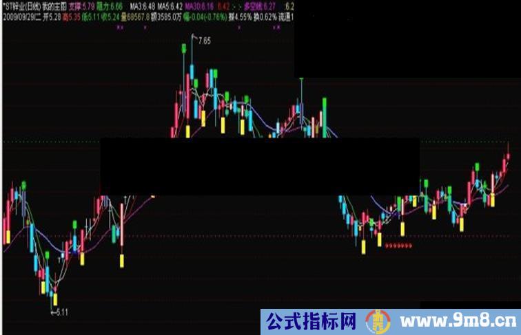 IF(A,多空线,DRAWNULL),COLORYELLOW,POINTDOT;