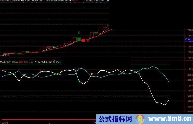 3.当黄线上穿蓝线时为阻击买点.下穿为卖点.