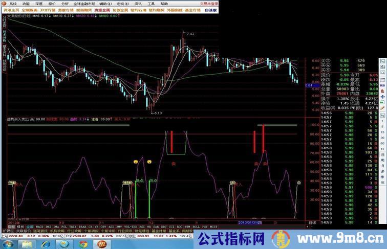 自用的一个副图指标,趋势买入卖出,绝对必杀的提示指标,无未来。