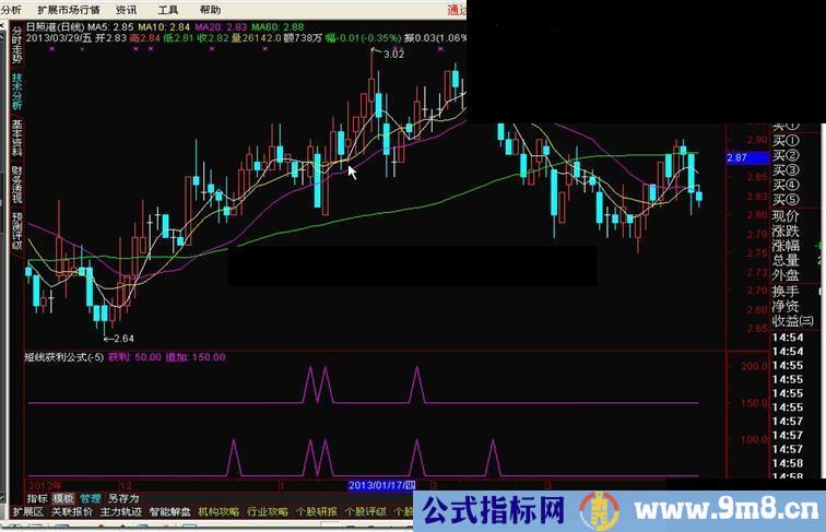 获利:IF (X,100,50),COLORFF00FF;