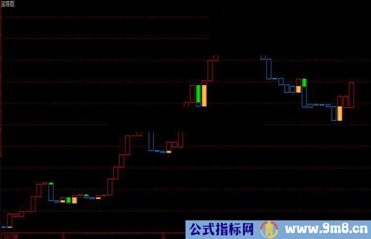 STICKLINE(VAR1A,REF(CLOSE,1),REF(CLOSE,2),3.0,0),COLOR008800;