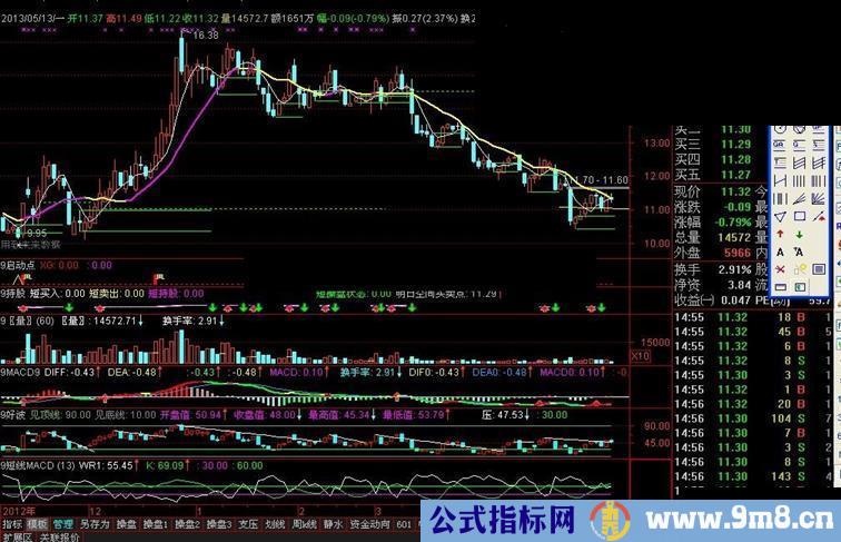 做股票就要做强势股票,我找强势股票的方法,和大家有点区别,我用天才威廉指标,当绿色线上穿白色线,在上方运行时就是强势股票。在强势股中找时机去操作股票,每一次WR1白线向下拐头都有操作的机会,大家自己去悟吧,我不能讲的太详细了,毕竟是我的秘诀。我还靠他来吃饭呢,买房呢