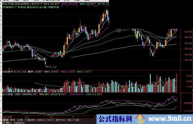 1、主力以往一直在MAOBV上方运行,现在在MAOBV的下方运行,并且触到能量下限(最好有2次接触)者,反弹需求最大。