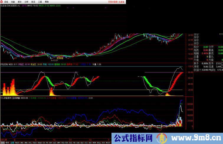 STICKLINE(火焰山>0,0,今量*0.8,8,0) COLOR0066FF;