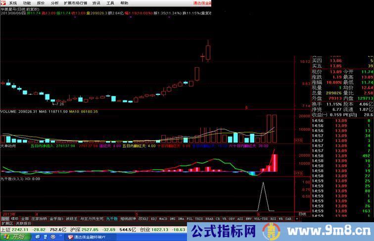 用收费数据可以看的大单动向,红柱子越大越好,指标中的那条线,由绿变红买入,由红变绿卖出,简单操作,红线持股,绿线持币。指标只是参考,选股才是核心,我的选股每一个都有未来函数,不要问我索取