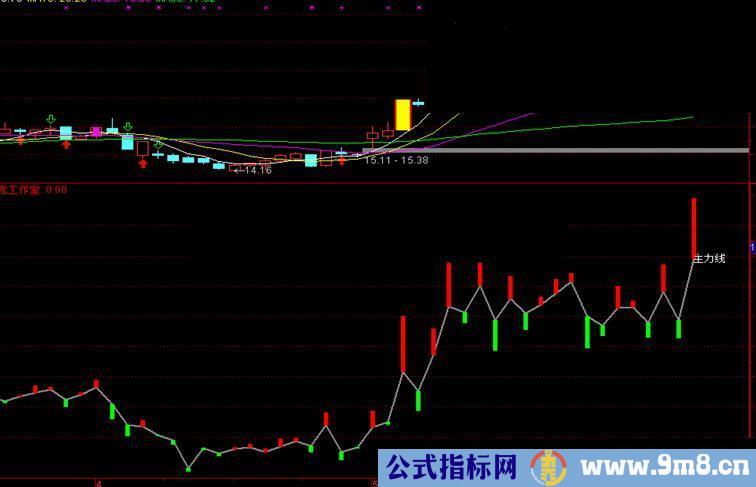 STICKLINE(DT<0,主力持仓线+DT,主力持仓线,0.5,0),COLOR00FF00;