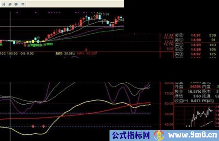 抢钱:DRAWTEXT(CROSS(中线2,-90) AND (长线<中线 AND 长线>REF(长线,1)OR 短线<20 AND 中线<20 AND 长线<20),长线,'黄金坑'),COLORFF00FF;