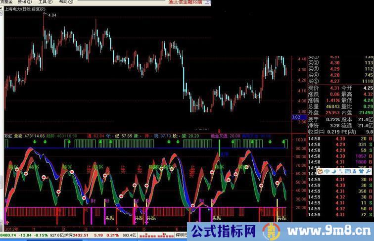 DRAWTEXT(CROSS(VAR44,VAR55) AND CROSS(KK,DD),10,'共振'),COLOR00FFFF;