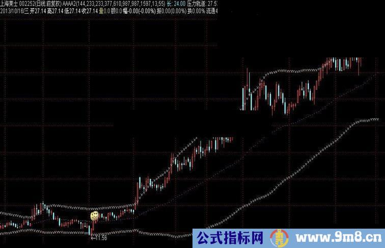 长:EMA(SLOPE(TP,13)*1+TP,W),POINTDOT,COLORCYAN;