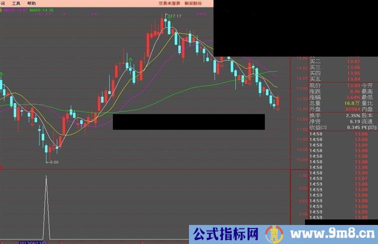 本人不喜欢追涨 喜欢抄底 降低风险嘛 再加上跌了几天 也该出机会了 正是这个指标发挥功力的时候 该指标准确率极高 两周10个点左右吧 如若与其他指标共振 如 J线共振 呵呵 基本无失手啊 源码就不共享了哈 但无使用期限 允许我自私一点 好东西嘛呵呵 自己用就好 喜欢的朋友给点分加关注哦 废话不多说了 上图 绝无未来