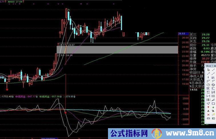 中线资金:MEMA(T2,10),COLORMAGENTA;