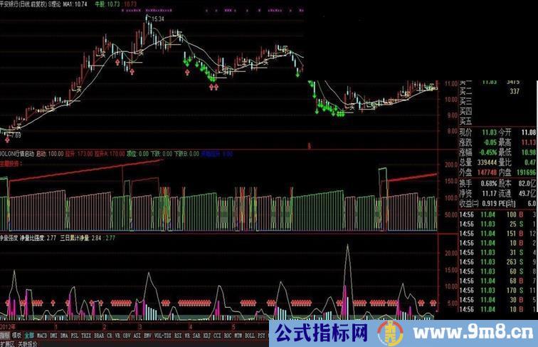 三日累计净量:SUM(净量比强度,3),COLORYELLOW,LINETHICK1;